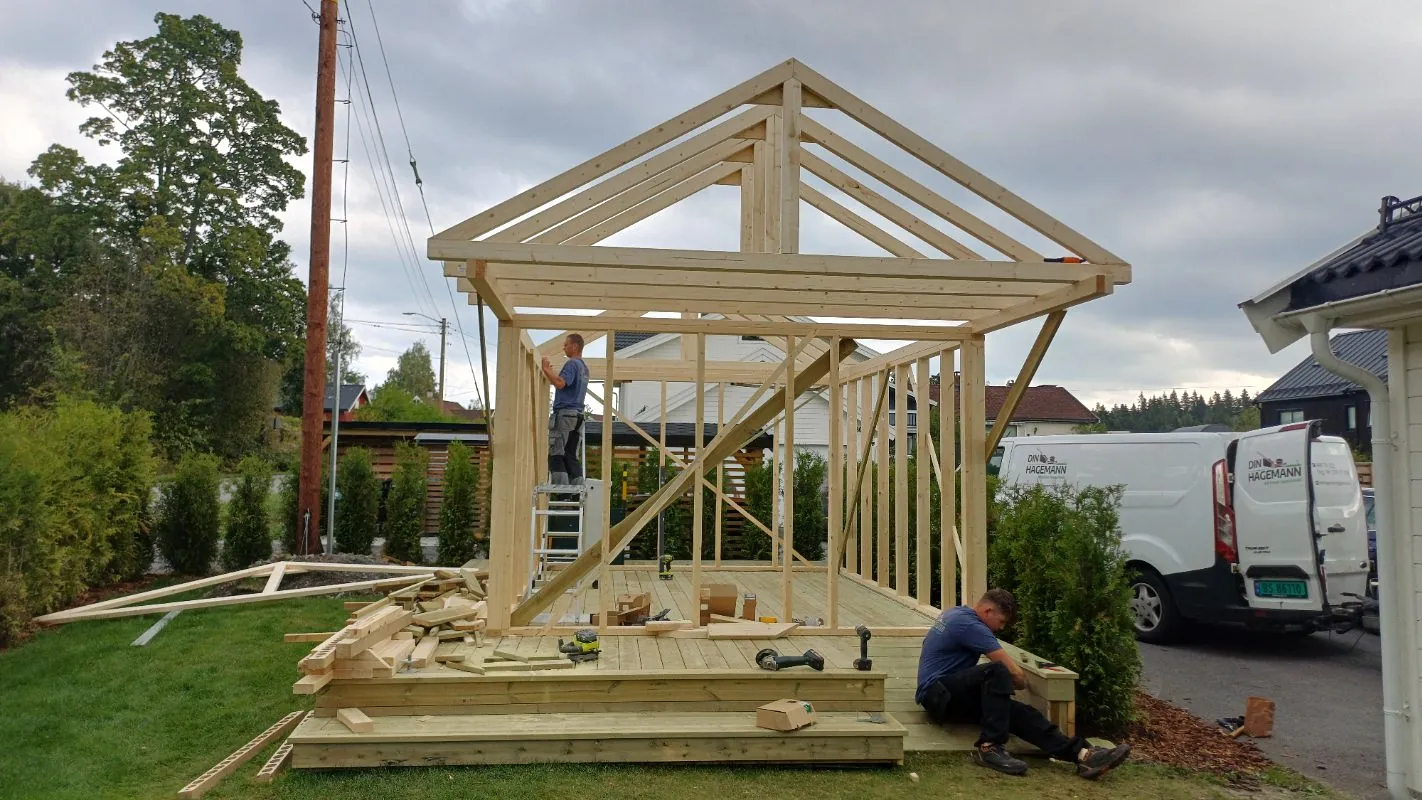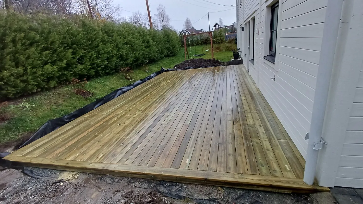 Vi utfører også snekkerarbeid som konstruksjon av terrasser, pergola, gjerder med mer.